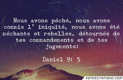 Je fis au Seigneur mon Dieu cette prière et cette confession : « Ah ! toi Seigneur, le Dieu grand et redoutable, qui garde alliance et fidélité à ceux qui l’aiment et qui observent ses commandements, nous avons péché, nous avons commis l’iniquité, nous avons fait le mal, nous avons été rebelles, nous nous sommes détournés de tes commandements et de tes ordonnances. Nous n’avons pas écouté tes serviteurs les prophètes, qui ont parlé en ton nom à nos rois, à nos princes, à nos pères, à tout le peuple du pays. À toi, Seigneur, la justice ; à nous la honte au visage, comme on le voit aujourd’hui pour les gens de Juda, pour les habitants de Jérusalem et de tout Israël, pour ceux qui sont près et pour ceux qui sont loin, dans tous les pays où tu les as chassés, à cause des infidélités qu’ils ont commises envers toi. Seigneur, à nous la honte au visage, à nos rois, à nos princes, à nos pères, parce que nous avons péché contre toi. Au Seigneur notre Dieu, la miséricorde et le pardon, car nous nous sommes révoltés contre lui, nous n’avons pas écouté la voix du Seigneur, notre Dieu, car nous n’avons pas suivi les lois qu’il nous proposait par ses serviteurs les prophètes. » – Parole du Seigneur.